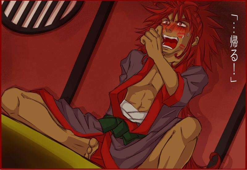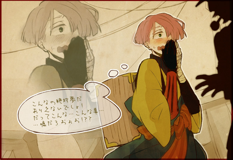 一体どんな場面かと申しますと、何の気なしに元気良く伍番隊の紅彦さん宅に伺ったはいいが、丁度、湯浴みの最中で、もっちろん何も考えず(男なんだしー)なノリで「紅さーん!」って浴室に入り込もうとした瞬間うっ(゚ロ゚;)!?。